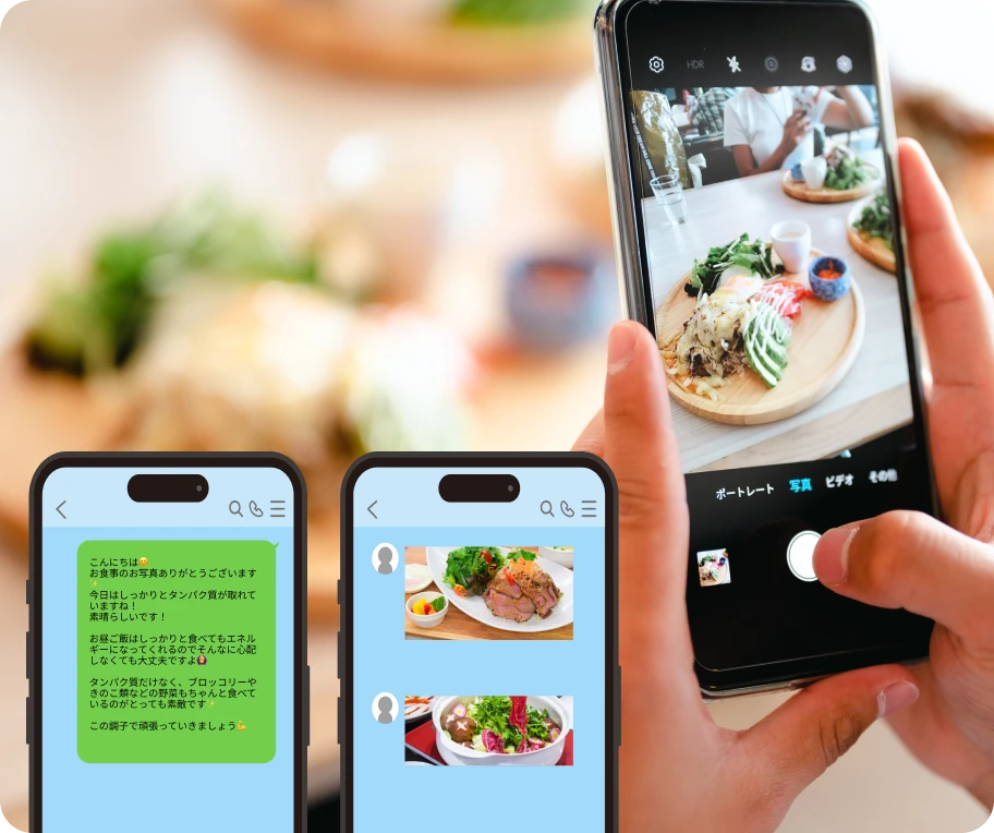 女性トレーナーが、あなたのライフスタイルに合わせた食事管理を行い、生活改善を目指して毎日サポートします。LINEでの食事報告により、一人では誘惑に負けてしまうという方でも、無理なく続けることができます。